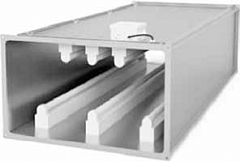 Секция бактерицидная SBS применяется для обеззараживания воздуха ультрафиолетовым излучением непосредственно в канале воздуховода. Камера монтируется в любом положении. Корпус изготавливается из оцинкованной стали. В качестве ламп применяются бактерицидные газоразрядные ртутные лампы низкого давления мощностью 75 Вт (питание 230В). Требуемый бактерицидный поток рассчитывается по формуле: N=(H *L)/3600, где N – требуемый бактерицидный поток, Вт; H – требуемая объёмная бактерицидная доза, Дж/м ; L – расход воздуха, м /ч. Выбирается лампа или несколько ламп с большим, чем расчётный, суммарным бактерицидным потоком. При этом расход воздуха через секцию бактерицидной обработки воздуха SBS не должен превышать максимально допустимого.